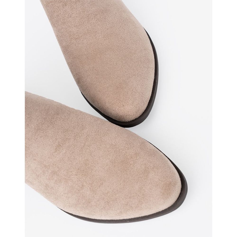 El color beige de estas botas hace que se mezclen bien con varios atuendos, desde jeans, hasta faldas y vestidos. Con el ancho de la parte superior de 22 cm y una altura de 11 cm, las botas se ajustan perfectamente a las piernas, y el talón de 3 cm agrega elegancia sin pérdida de comodidad.