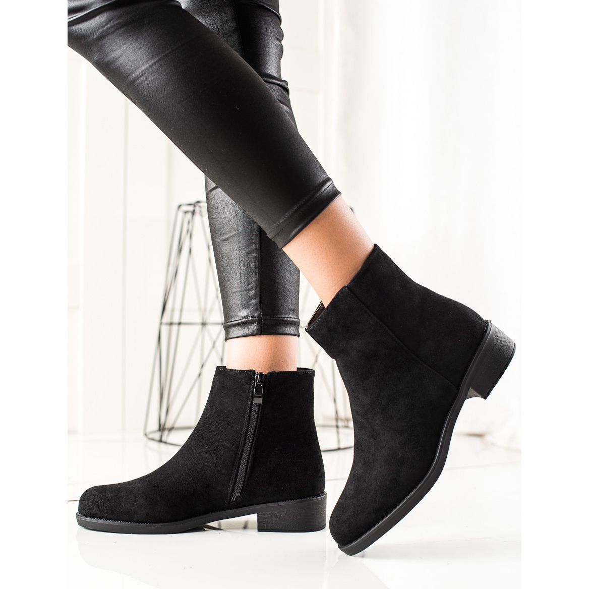 Descubre la elegancia y la comodidad en cualquier momento con los botines de ante negros de Ideal Shoes. Estos preciosos botines de mujer combinan un diseño clásico y un estilo casual, lo que los hace perfectos para el uso diario. Hechos de cuero ecológico de gamuza de alta calidad, brindan no solo un aspecto moderno, sino también comodidad de uso.