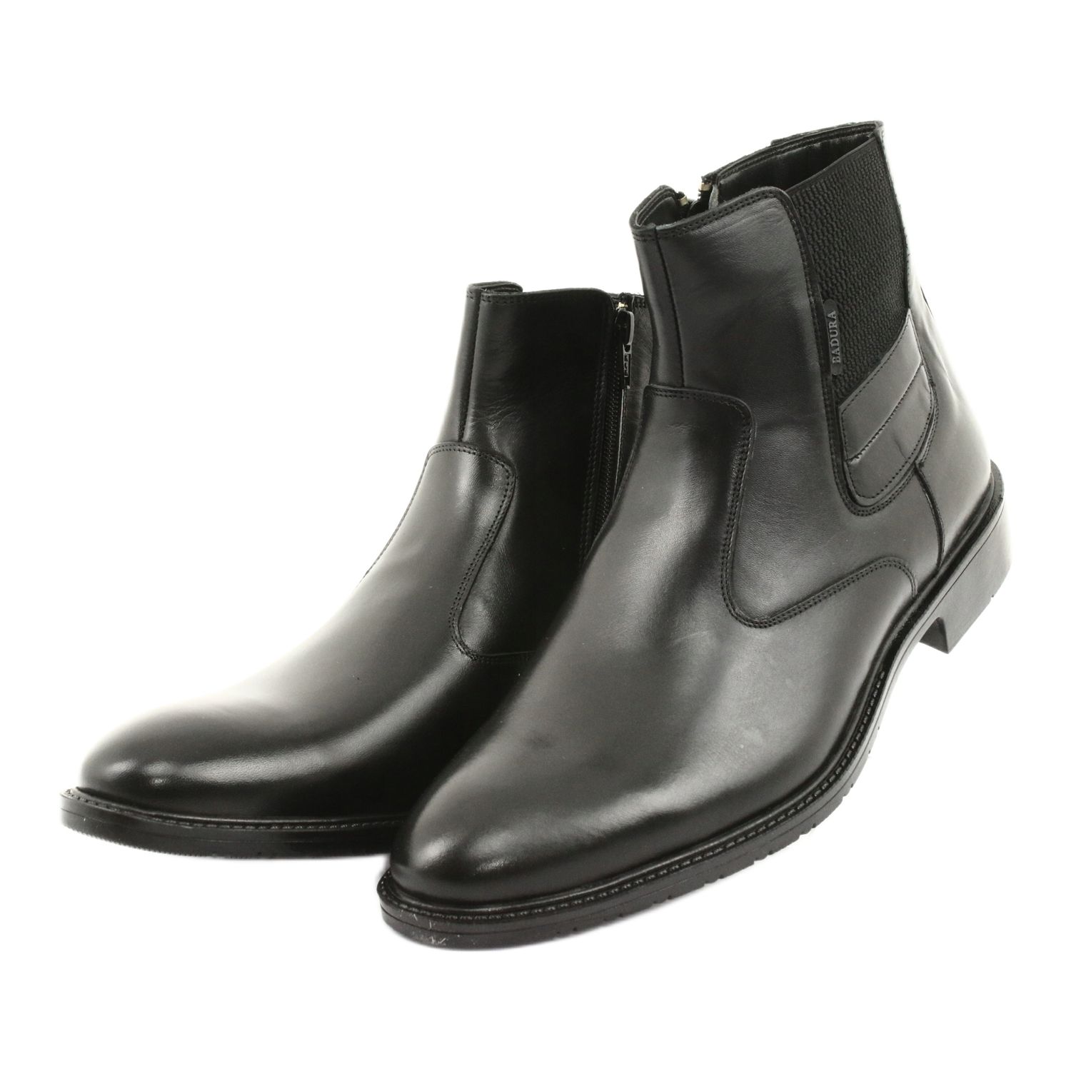 Los botines Badura 4797 se caracterizan por una parte superior estándar, lo que los hace combinar perfectamente tanto con un traje formal como con conjuntos informales, por ejemplo con una camisa o unos vaqueros. La clásica cremallera hace que sea fácil de poner y quitar, lo que supone una ventaja adicional para los hombres activos.