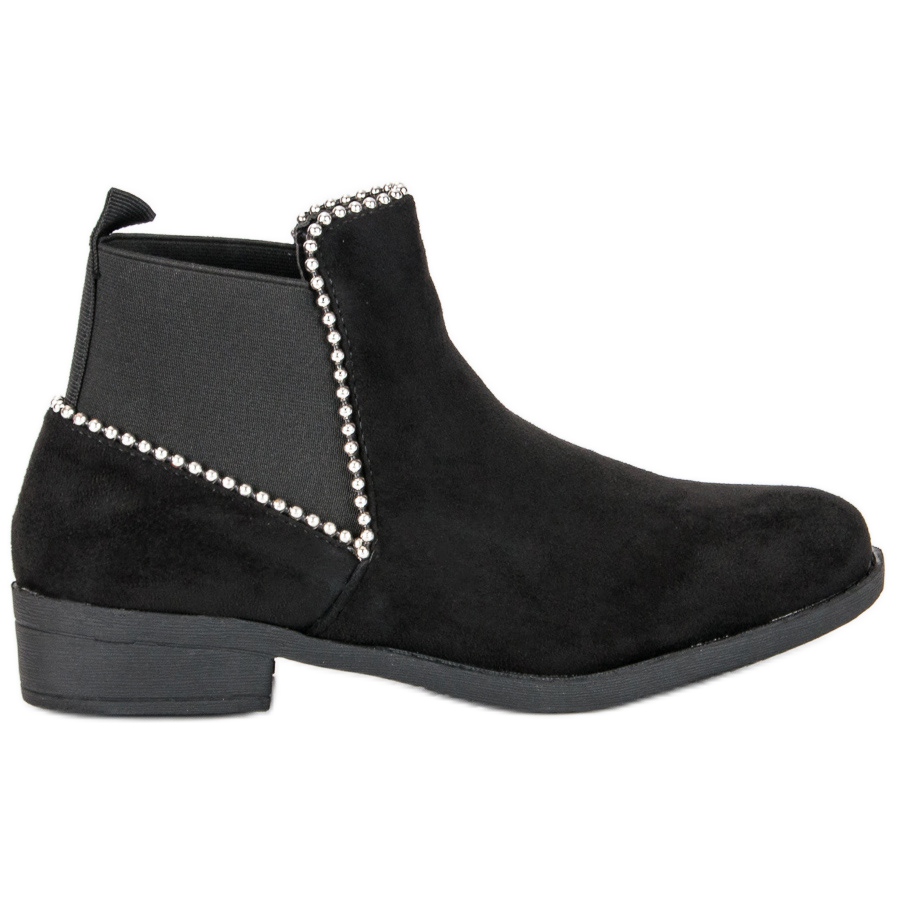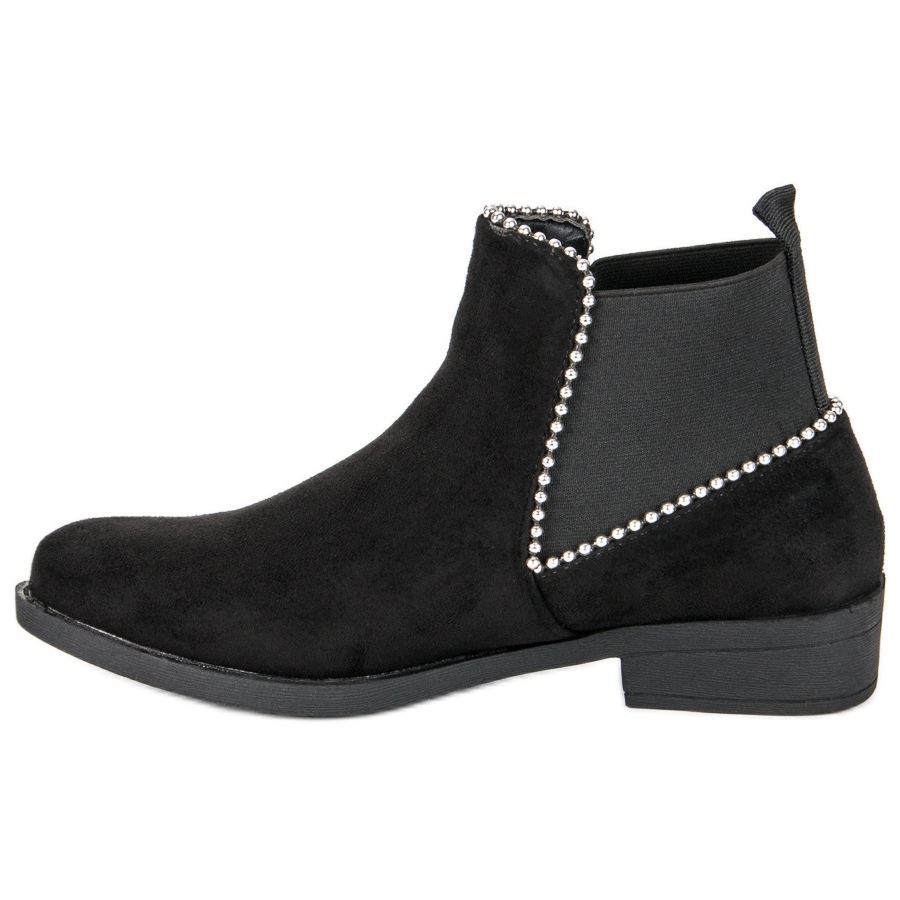 Descubra la perfección en un clásico con nuestras botas Chelsea de ante negro que combinan comodidad con un diseño moderno. Estos elegantes zapatos con suela plana, decorados con delicadas pedrería y una original goma elástica en la parte trasera, son perfectos tanto para el día a día como para salidas nocturnas.