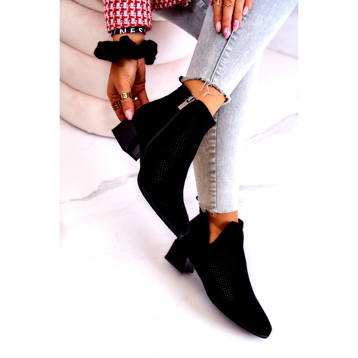 Detalles: Vinceza Botines De Ante Calado Carine Negro Con Corte