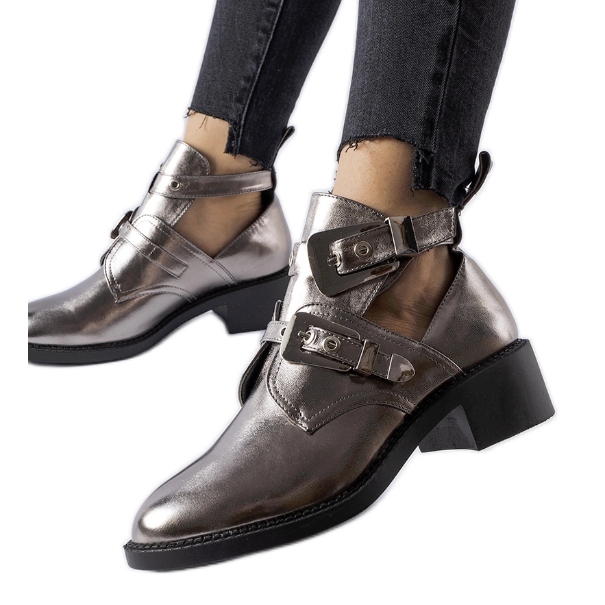 ¡Descubre un estilo único con los botines Ritaldi en color plateado! Estos zapatos oscuros y metálicos se distinguen por un corte fuerte y una moderna puntera almendrada. Confeccionados en piel ecológica de alta calidad, aportan comodidad y elegancia para el día a día. Gracias al cómodo poste de 4,5 cm de altura, te sentirás estable y seguro, independientemente de los desafíos que te depare el día.