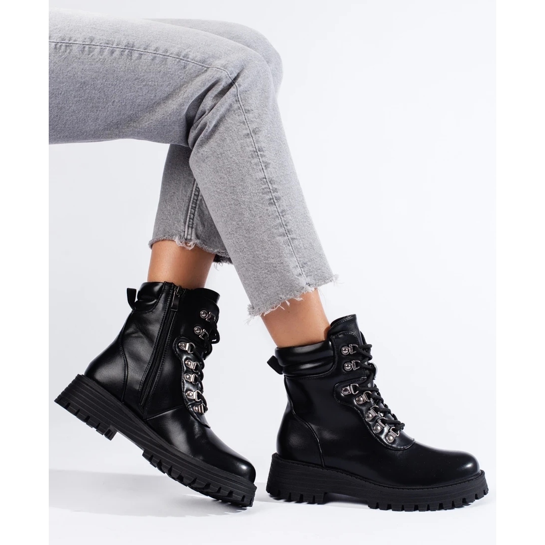 Las botas se caracterizan por un talón reforzado y rígido, que garantiza comodidad y estabilidad de uso. La suela de plástico con dibujo garantiza un excelente agarre y la altura del tacón de 4,5 cm hace que los zapatos sean extremadamente cómodos y añaden un toque de elegancia a tu look. Además, una plataforma de 2,5 cm de altura garantiza una comodidad aún mayor al llevarlo puesto.