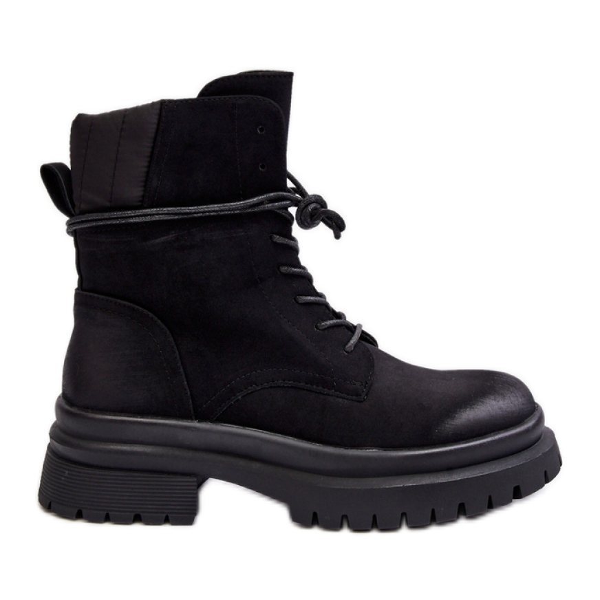 Presentamos hermosas botas negras para mujeres en una suela gruesa, que será un complemento perfecto para cada estilo de otoño e invierno. Estas elegantes botas de montaña están hechas de cuero ecológico de alta calidad, lo que las hace no solo elegantes, sino también amigables con el medio ambiente.