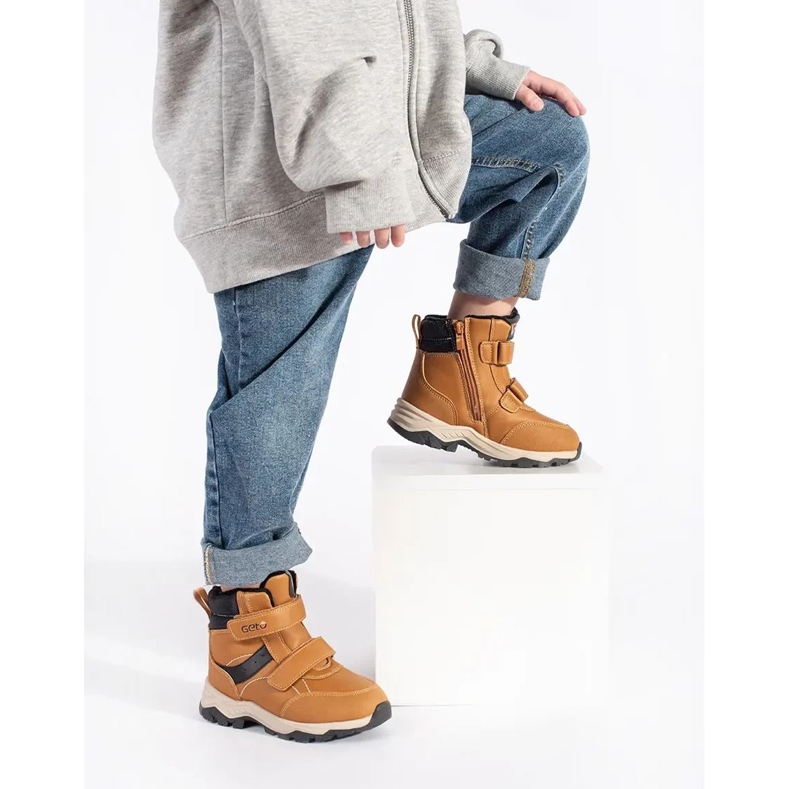 Los niños aislados con zapatos de cierre adhesivo marrones son la opción perfecta para pequeños exploradores que necesitan calzado cómodo y funcional para la temporada de otoño e invierno. Hecho de cuero orgánico de alta calidad, estos zapatos combinan un aspecto elegante y soluciones prácticas.