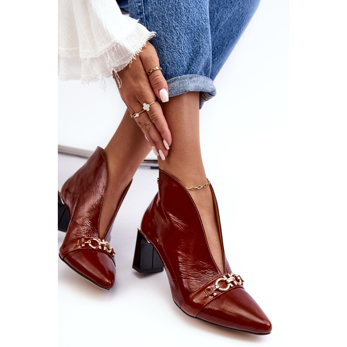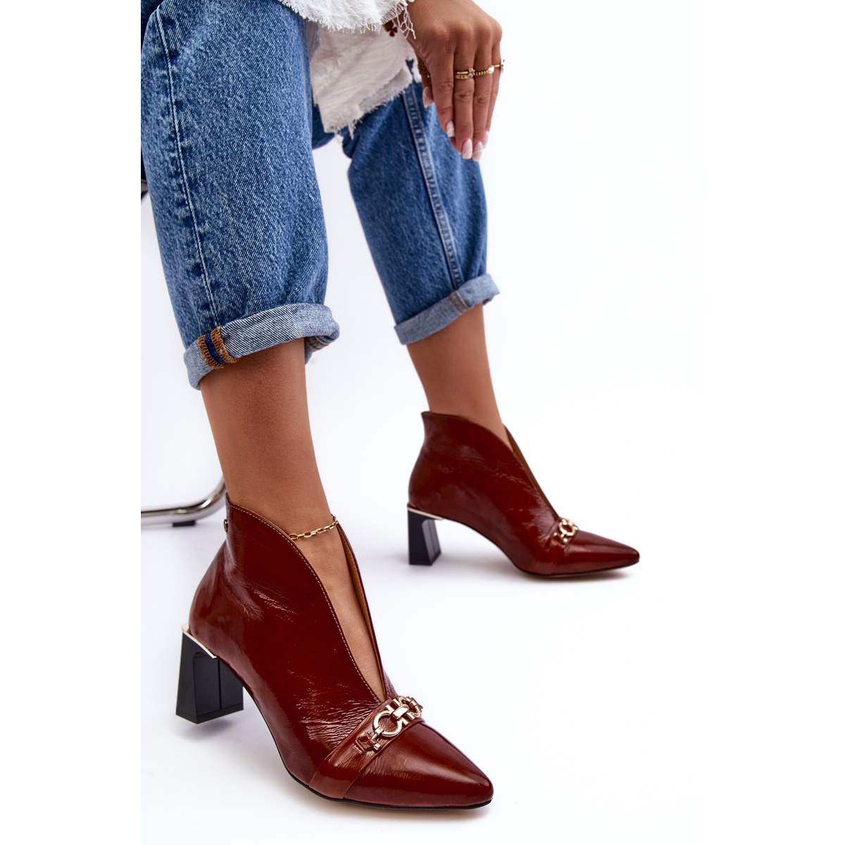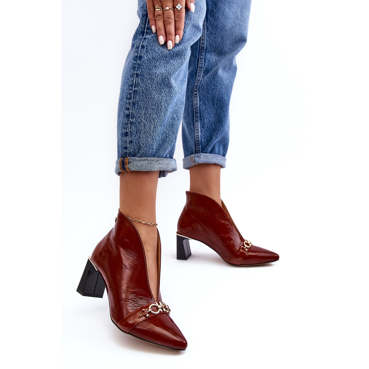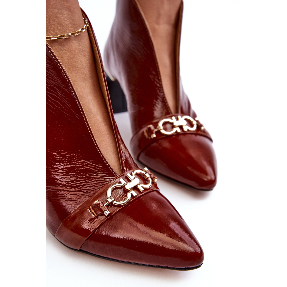 Los Botines de Piel Maciejka 05262-02 son unos zapatos de mujer de color marrón, fabricados por la empresa polaca Maciejka. El cuero natural de alta calidad con el que está fabricado este producto seguramente atraerá la atención de muchos. Las botas tienen un elegante elemento decorativo en la parte delantera. Están en la categoría "Mujer » Mujer » Botas". Cabe destacar la ausencia de forro y una característica importante: la altura superior de 10 cm. Los zapatos son marrones con dorado. La suela es de color beige y de plástico. La plantilla es de piel natural y el material exterior es charol. Las botas tienen puntera almendrada, no están aisladas y tienen un tacón de 6,5 cm de altura. El producto se vende en el embalaje original del fabricante. Los zapatos tienen el código del fabricante: BM182019. El peso del producto con embalaje individual es de 0,8 kg. Es un modelo slip-on, sin ningún tipo de sujeción adicional. Los zapatos son hasta el tobillo, sin ningún patrón dominante.