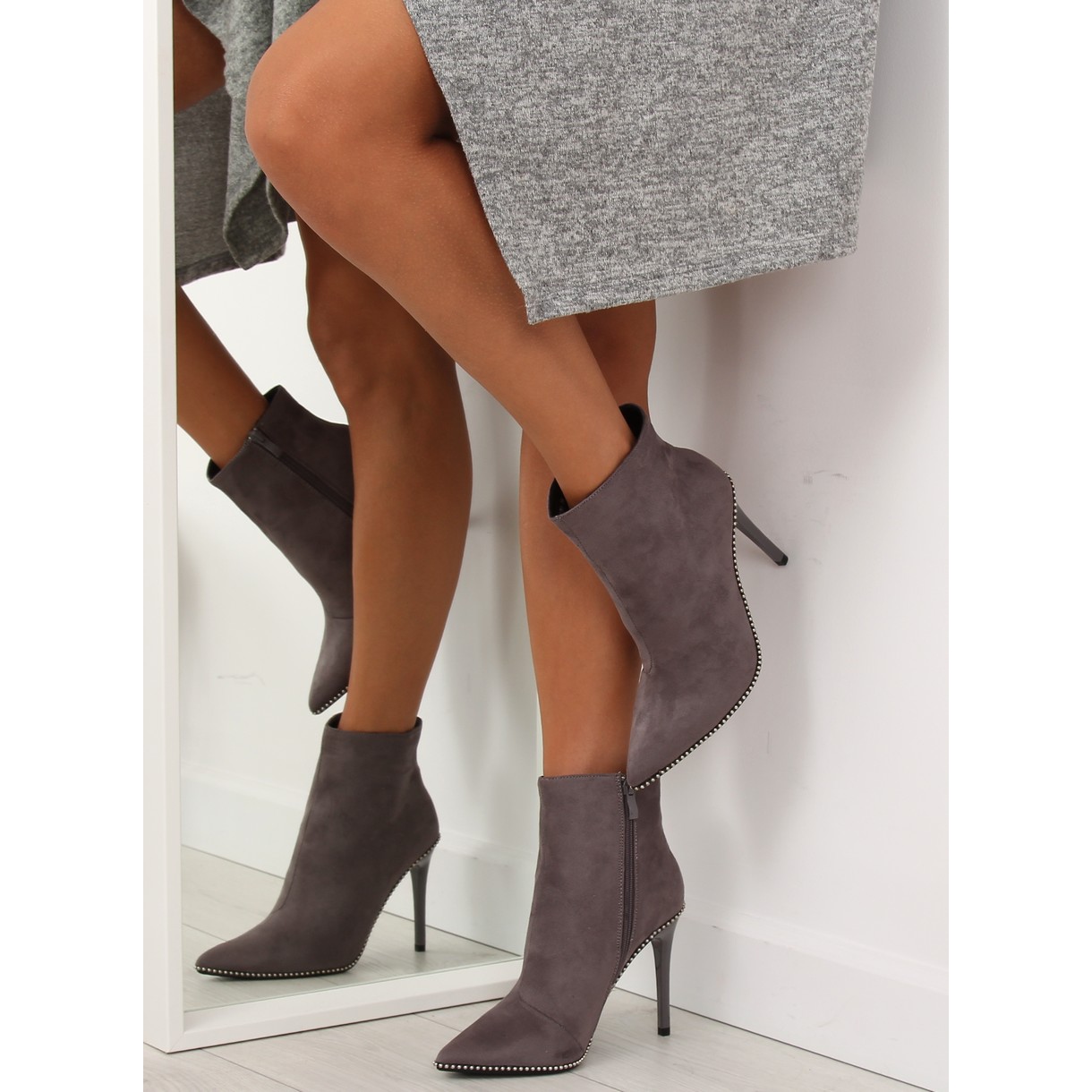 Botas de tacón alto para mujer. Se deleitan con un hermoso corte clásico, y las cuentas de plata decorativas se ven muy impresionantes. Están hechos completamente de gamuza ecológica, lo que añade elegancia a los zapatos. Tacón delgado: el tacón de 10 cm de altura está muy de moda esta temporada y, al mismo tiempo, es femenino y alarga considerablemente las piernas. Zapatos dignos de estrellas :). Bañador - capa interna de espuma