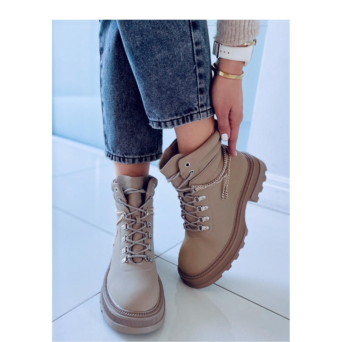 Te presentamos unas botas tramper extremadamente elegantes y cómodas. Estos botines beige con cordones son la elección perfecta para las mujeres que valoran la comodidad y un look moderno. Se distinguen por una suela gruesa de 2 cm y una altura de tacón de 4,5 cm, que proporciona una buena sujeción y estabilidad durante el uso.