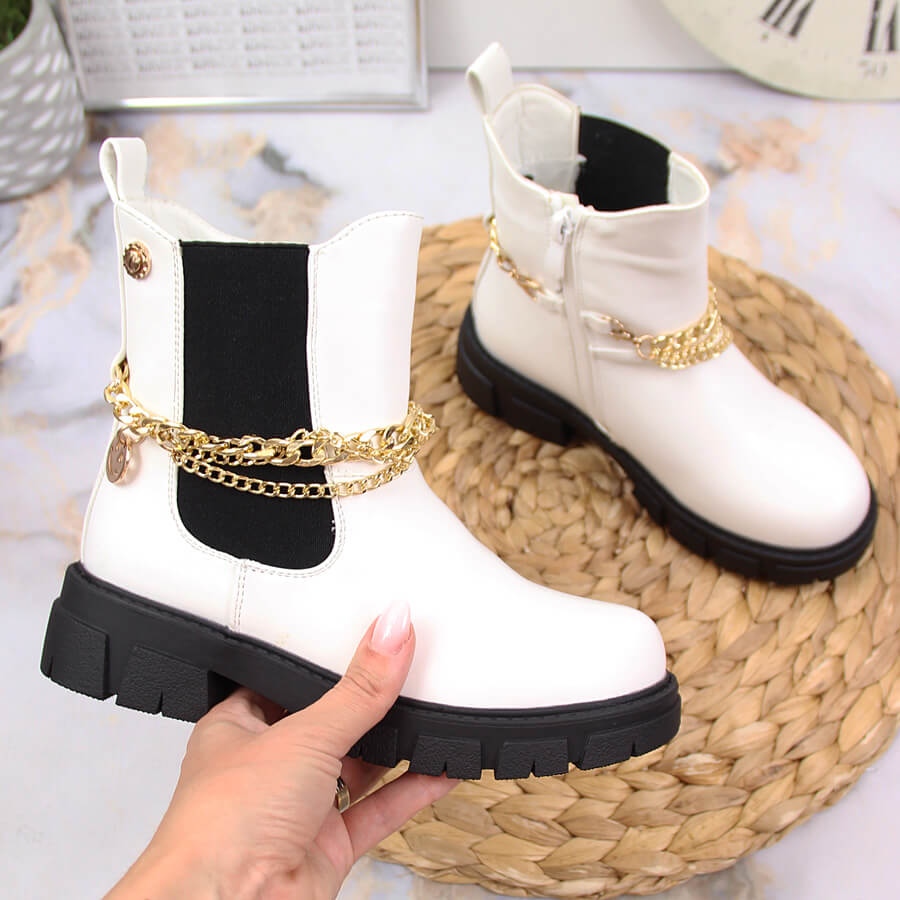 Descubre las botas Chelsea para niña con cadena en un elegante color blanco, ¡un éxito absoluto esta temporada! El producto de la reconocida marca Vinceza combina a la perfección estilo y comodidad, gracias a su alta calidad y atención a cada detalle.