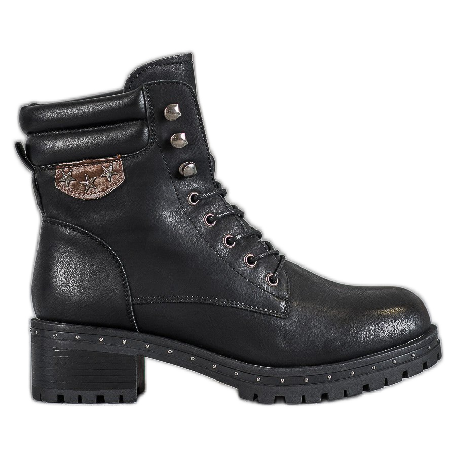 La suela de plástico con dibujo garantiza agarre y seguridad en diversas superficies, lo que las convierte en una opción ideal para el uso diario. Los botines SHELOVET encajan perfectamente en el estilo casual y militar que está de moda actualmente, y su color negro neutro hace que sea fácil combinarlos con una variedad de estilos.