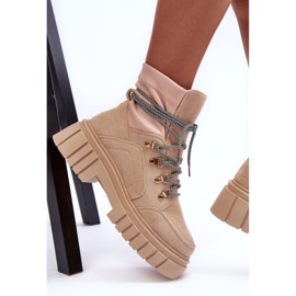 Elegable, cómodo y preparado para las botas FB3 de los días más fríos en un tono beige son imprescindibles este otoño e invierno. Hecho de Eco-Part, incrustada en una plataforma masiva con un talón de 6 cm de altura, garantiza la estabilidad y la apariencia de moda. La parte superior llega al tobillo, y el interior está forrado con una manta de calzado cálido, gracias a la cual los zapatos funcionarán durante los días más fríos. El sujetador de encaje da la posibilidad de un ajuste perfecto.