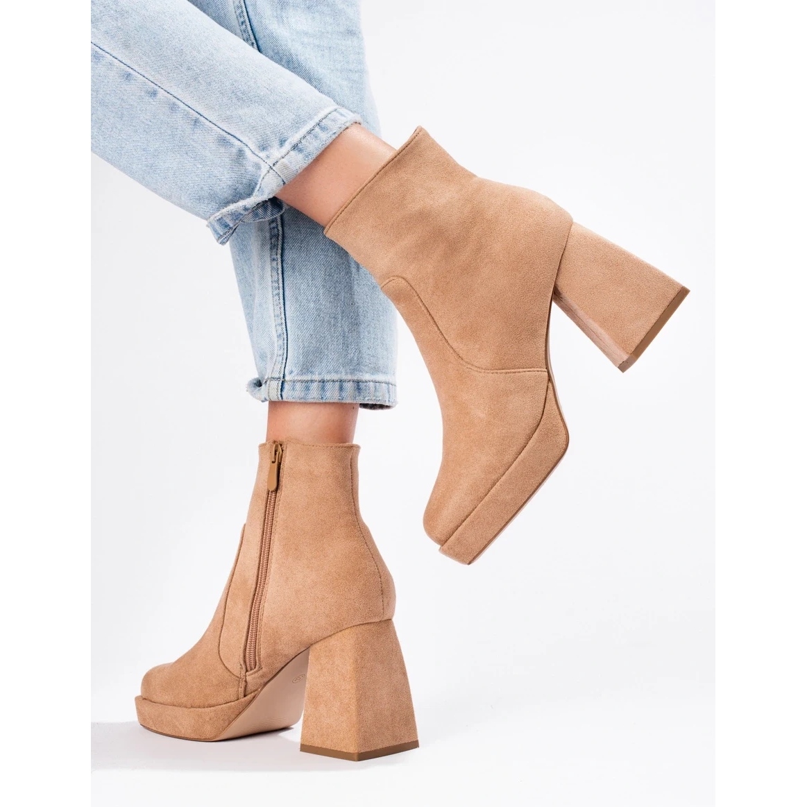 Deje que estos botines beige de tacón alto se conviertan en un elemento indispensable de su guardarropa: perfectos para jeans, vestidos o pantalones elegantes. ¡Elige el estilo, la comodidad y la calidad que te ofrece este par de zapatos únicos!