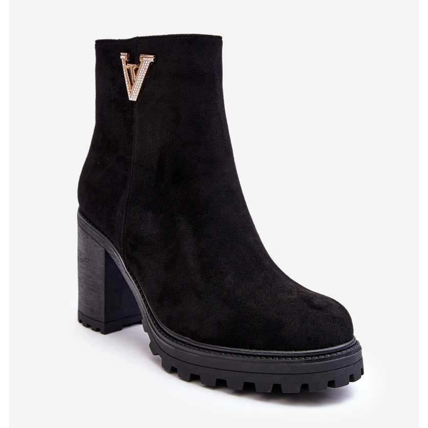 Detalles: Botines Mujer Tacón Alto Ante Con Adorno, Negro Fuerte