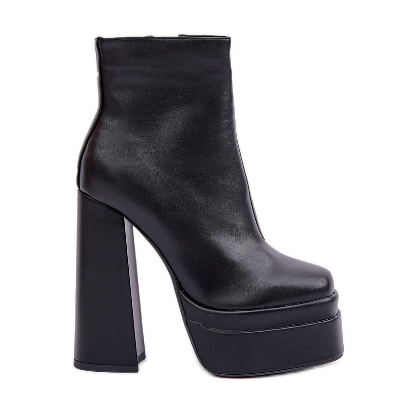 Detalles: Botines negros aislados con plataforma enorme y tacón alto.