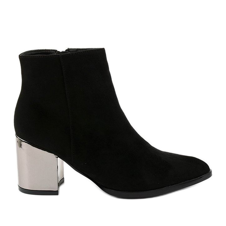 Los botines de tacón BM Astihus negros son una elección perfecta para toda mujer que valora la elegancia y la comodidad. Hechos de gamuza ecológica de alta calidad, estos elegantes zapatos combinan diseño moderno y funcionalidad. La punta puntiaguda añade elegancia y el tacón decorativo de 7,5 cm de altura garantiza estabilidad y comodidad de uso durante mucho tiempo.