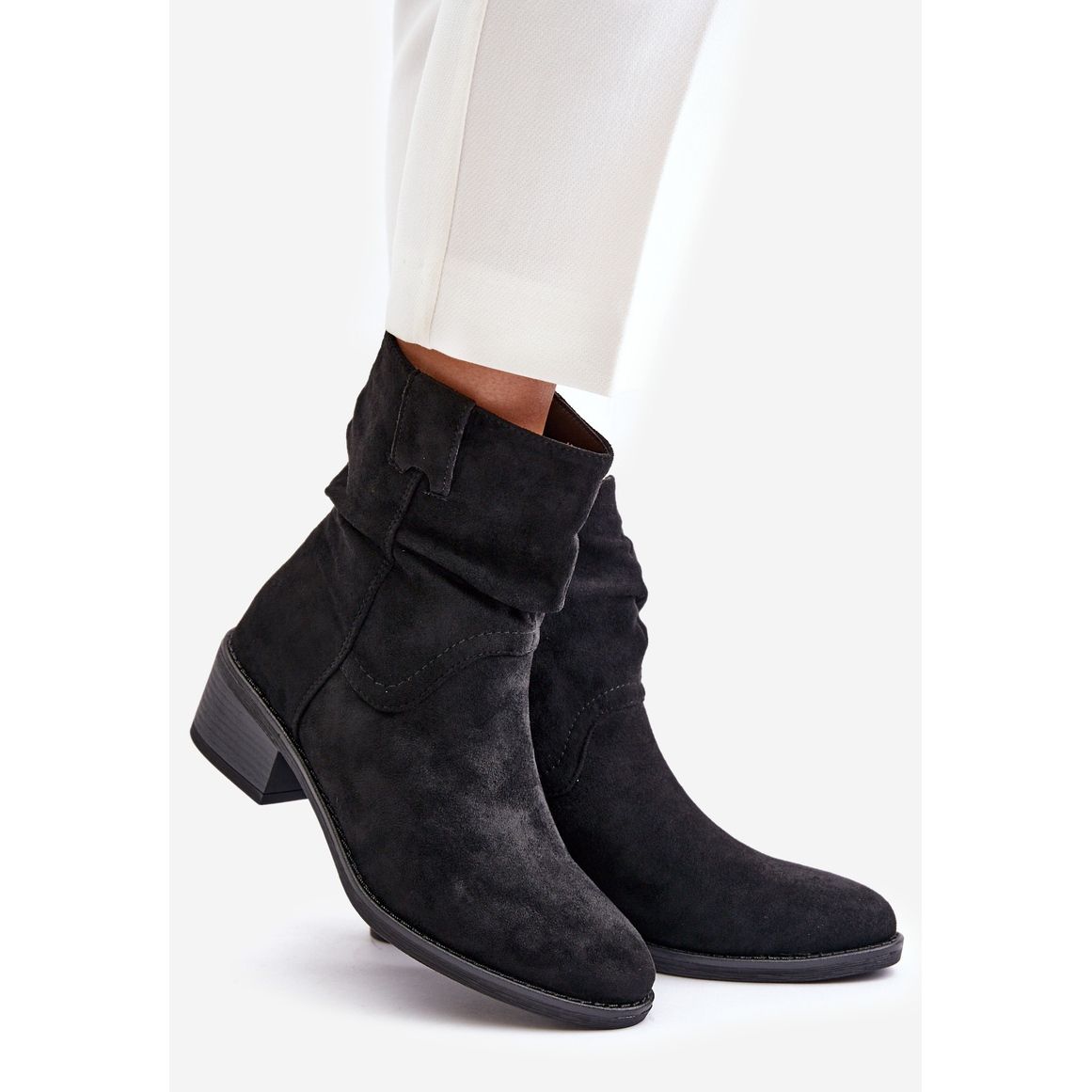 Inna marka Botines negros de mujer con aislamiento Zinanya y tacón bajo con parte superior fruncida