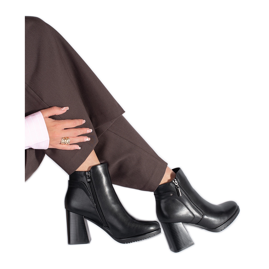 El cierre de cremallera hace que sea más fácil poner y despegar, y un plástico liso garantiza el agarre y la comodidad de uso. Estas botas negras son imprescindibles en el guardarropa de cada mujer, combinando un diseño de moda con soluciones prácticas.