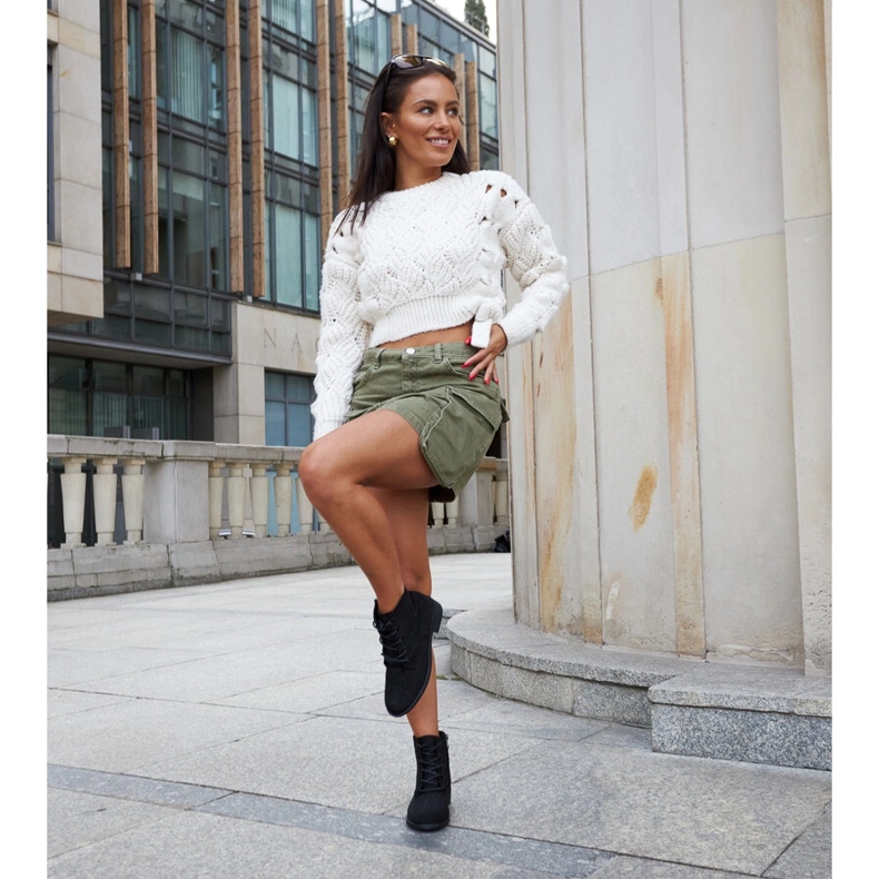 Botas elegantes y cómodas que agregarán esplendor a cada estilización de invierno. La nariz redonda les da sutileza, y la parte superior alta que alcanza el tobillo (15 cm) proporciona protección y comodidad durante los días más fríos. Los diamantes de imitación decorativa atraen la atención, enfatizando la naturaleza única del calzado, ideal tanto para sets informales como para salidas nocturnas.