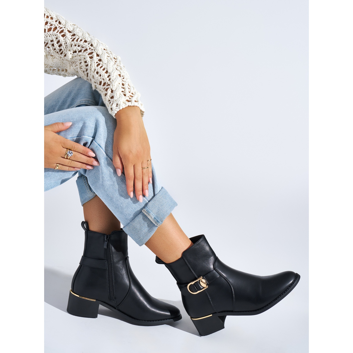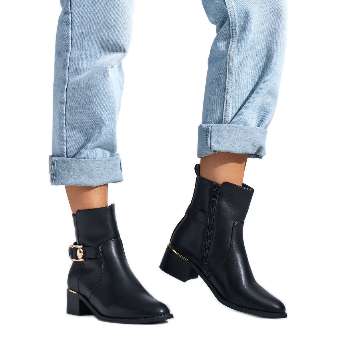 Fabricadas con cuero ecológico de alta calidad, las botas no solo son respetuosas con el medio ambiente, sino que también son fáciles de mantener limpias. El interior de los zapatos está forrado con tela, lo que aumenta la comodidad. Gracias al moderno color negro con detalles dorados adicionales, estas botas combinan perfectamente con una variedad de estilos, desde informales hasta elegantes.