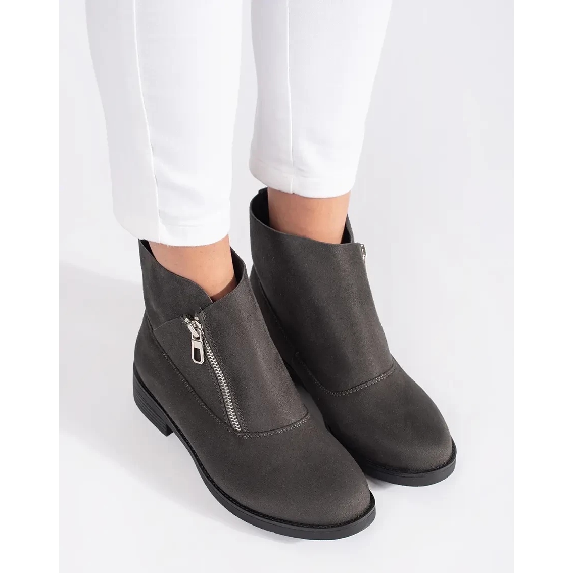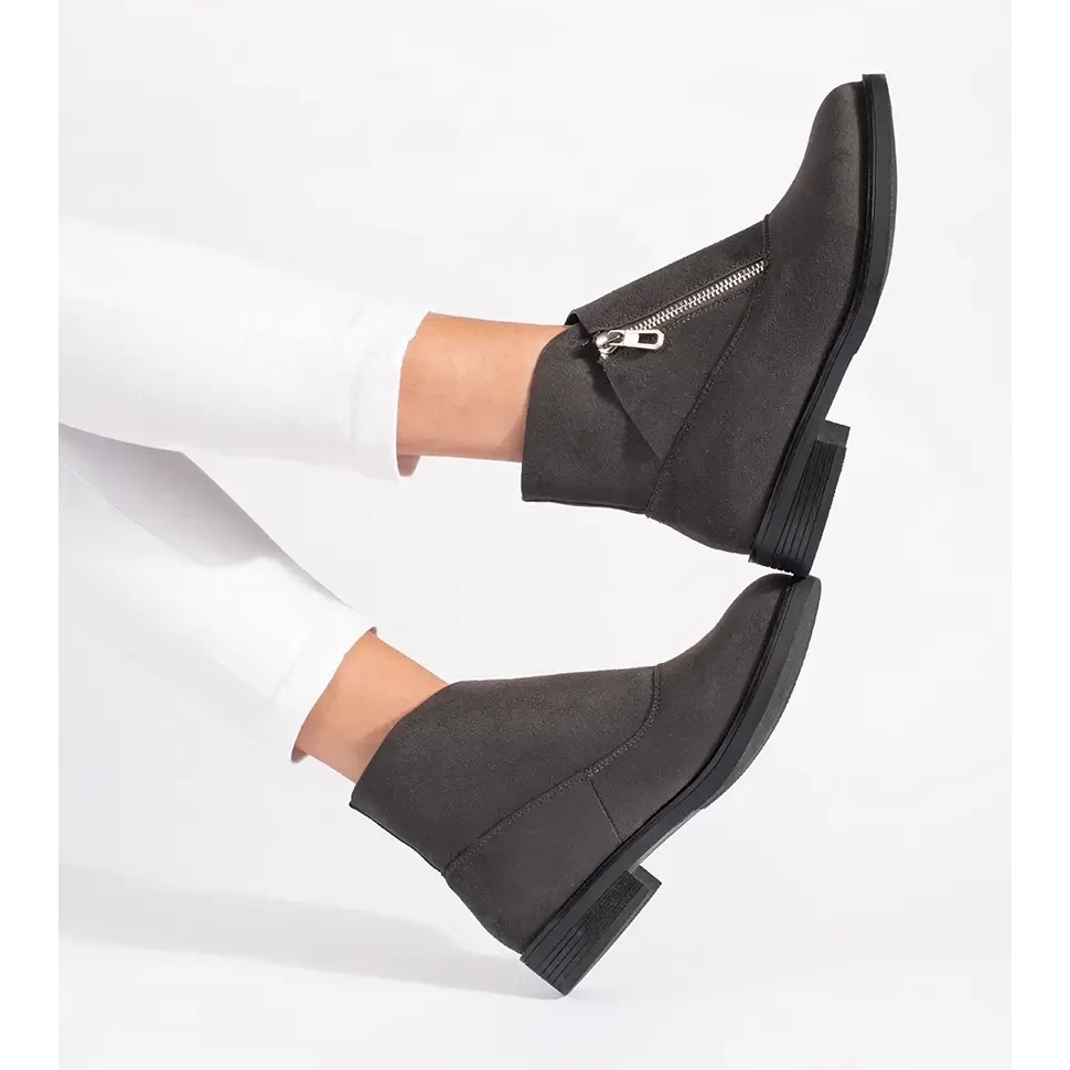 Shelvt Shelvt Botines planos grises con cremallera