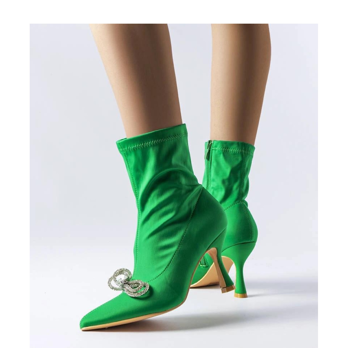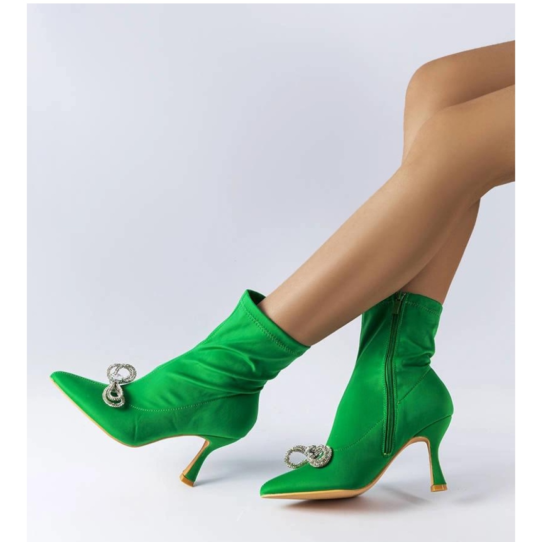 Las elegantes botas verdes decoradas con un lazo Mars de circonitas son la elección perfecta para toda mujer que quiera añadir un poco de brillo a su estilismo. Numeración estándar, por lo que te sugerimos elegir tu talla habitual. Las botas están hechas de tela de alta calidad, lo que las hace cómodas y duraderas. No tienen aislamiento, por lo que son perfectos para los fríos días de otoño e invierno. La suela es de plástico color beige, lo que aporta elegancia al calzado. La cremallera facilita ponerse los zapatos de forma rápida y cómoda. Los botines de la colección Otoño/Invierno son imprescindibles en el armario de toda mujer fashionista. ¡Añade un poco de brillo a tu estilismo y mantente siempre a la moda!