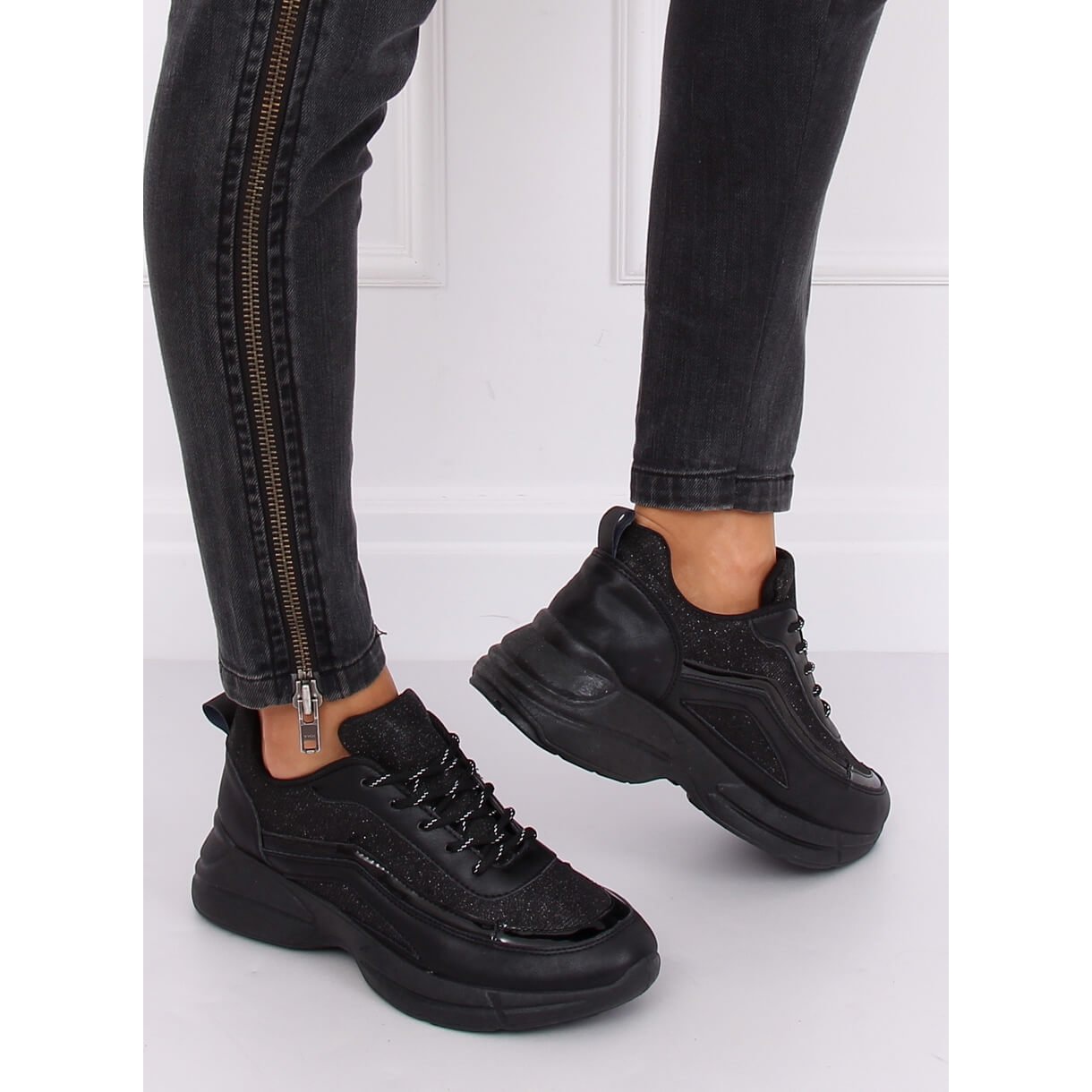 El modelo se distingue por una suela alta, lo que les da un carácter único. El acabado bellamente brillante seguramente atraerá la atención de quienes lo rodean. Confeccionados en piel y tejido ecológicos de alta calidad, garantizan durabilidad y comodidad de uso. El interior de las zapatillas está forrado de tela, lo que garantiza una excelente amortiguación y comodidad.