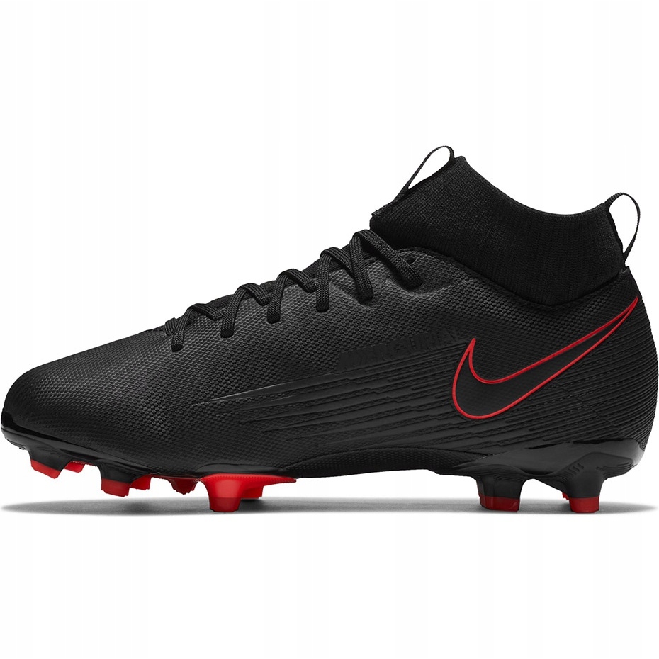 Las zapatillas de fútbol Nike Mercurial para niños están diseñadas para jugar en superficies naturales y artificiales. El producto está destinado a jugadores de nivel semi-amateur. Tacos Nike de la colección Black X Chile Red Pack. Parte superior suave y muy ligera fabricada con materiales sintéticos de alta calidad. Superficie estructural. Una extensión en forma de cuello Dynamic Fit de perfil bajo. Suela versátil.