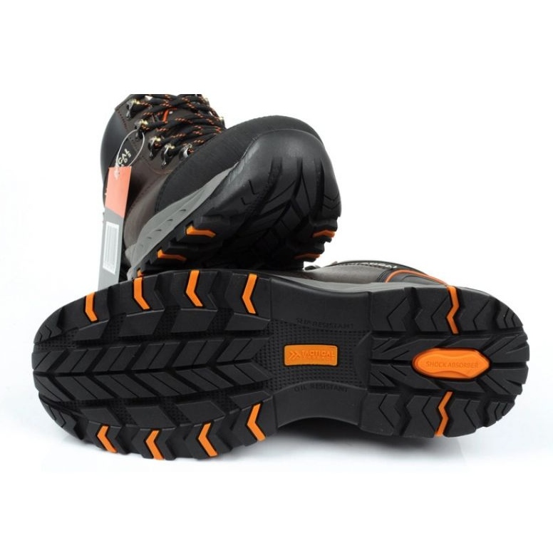 Los zapatos están fabricados en piel natural, lo que garantiza durabilidad y resistencia a los daños. La parte superior alta estabiliza perfectamente el tobillo y el forro interior de material textil garantiza comodidad incluso con un uso prolongado. Vale la pena prestar atención a la protección de acero de los dedos y la suela, que protegen contra impactos (hasta 200 J) y compresión (hasta 1500 kN). Además, la entresuela ofrece una resistencia a los pinchazos de hasta 1100 kN, lo que convierte a estos zapatos en una opción ideal para los trabajadores de la construcción.