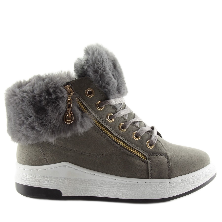 Los zapatos deportivos grises con aislamiento 16-529 gris son la elección perfecta para las mujeres que quieren combinar comodidad con un look moderno. Estas elegantes zapatillas se distinguen por el original pelo colocado a lo largo del tobillo, lo que les da un toque de calidez y elegancia, rompiendo el carácter deportivo del calzado. Una ventaja adicional es la cremallera dorada, que le da a los zapatos un diseño único y moderno.