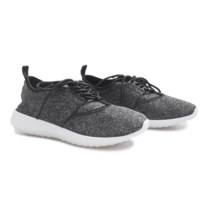 Calzado deportivo muy de moda en un clásico color negro. Los zapatos están hechos de tela transpirable de alta calidad. Gracias a una pequeña plataforma, las piernas de las mujeres lucirán mucho mejor. Este modelo es muy moderno y encaja perfectamente en las tendencias de moda actuales.