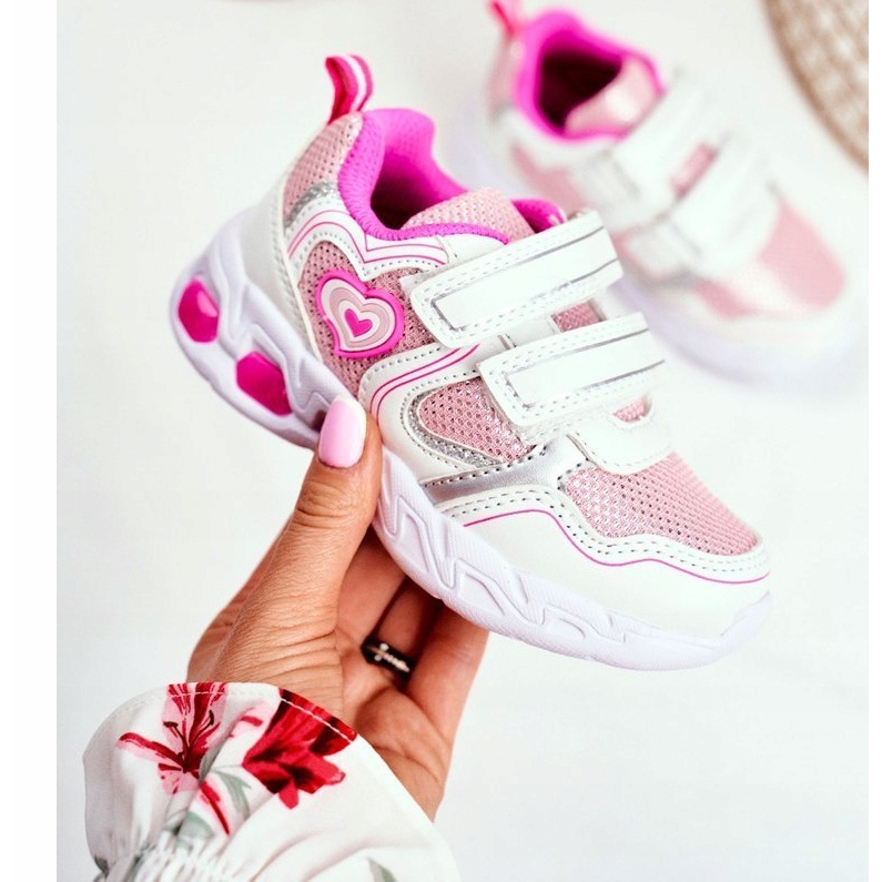 Descubre las increíbles zapatillas deportivas infantiles EVE en color blanco y rosa, ¡que serán la elección perfecta para tu hijo! Estos zapatos únicos combinan un diseño elegante y el más alto nivel de comodidad, y su mayor atractivo es la suela luminosa, que hará las delicias no solo de los niños, sino también de los padres.