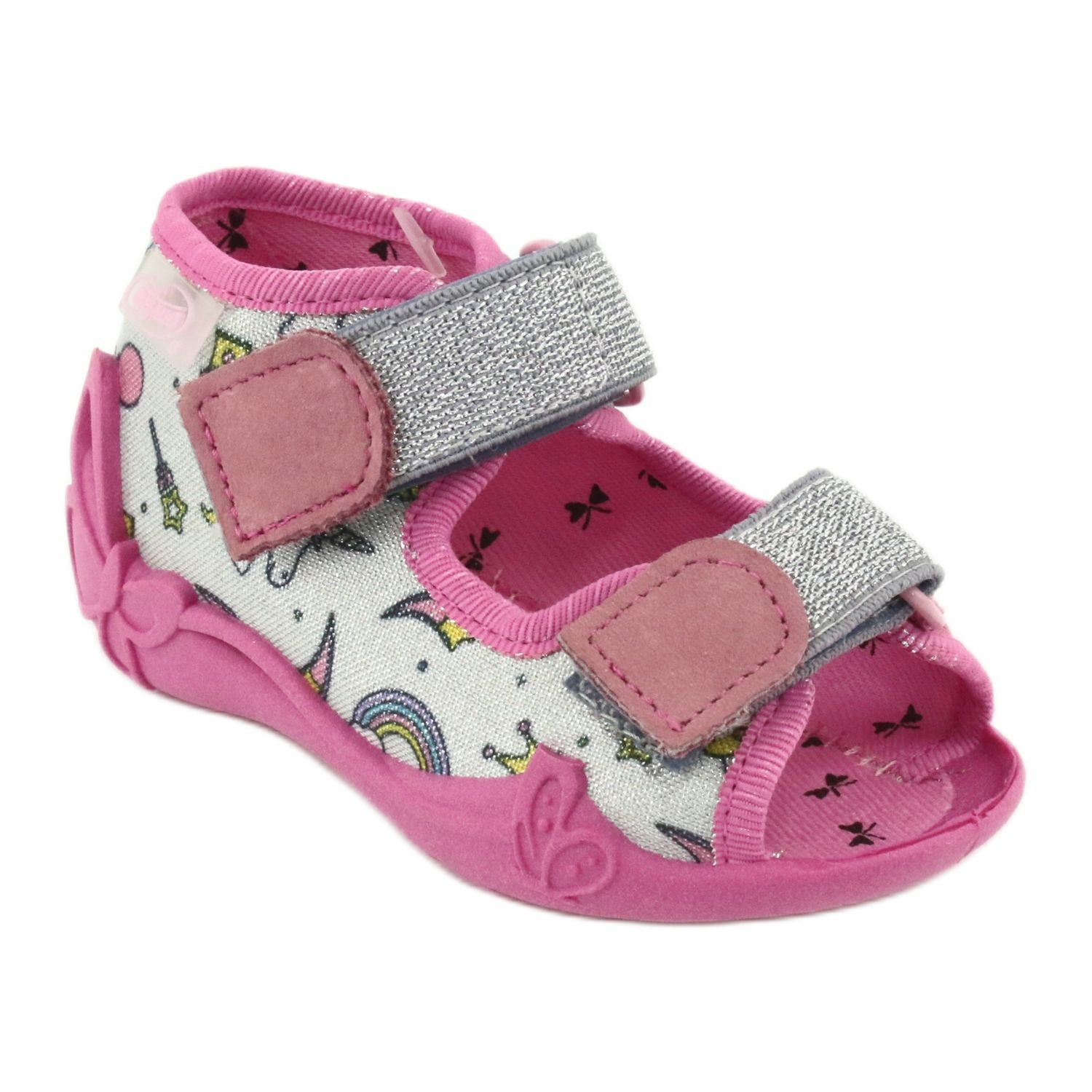 Las sandalias infantiles Befado 242P100 en color rosa y gris son una elección perfecta para los pies pequeños que necesitan comodidad y sujeción. Aseguran un ajuste perfecto gracias al sistema de cierre de cierre adhesivo, que hace que sean fáciles de poner y quitar. Un talón rígido estabiliza el talón, lo cual es especialmente importante para el correcto desarrollo de los pies del niño.