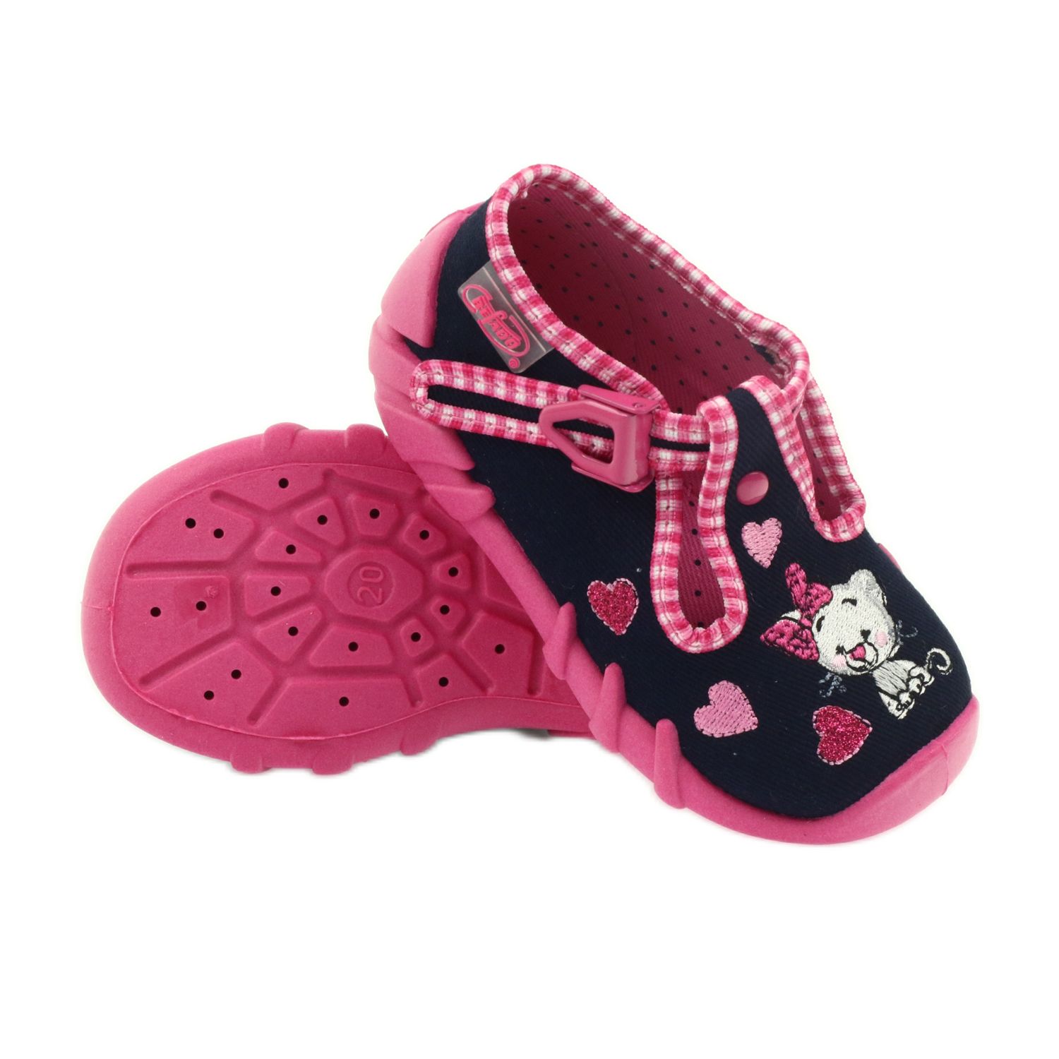 Ofrecemos zapatillas infantiles de la reconocida empresa polaca Befado, modelo 110P330, que combinan diseño moderno, comodidad y cuidado de la salud de los pies de los más pequeños. Estas elegantes pantuflas de color azul marino con detalles en rosa no solo lucen geniales en tus pies, sino que también son funcionales y cómodas.