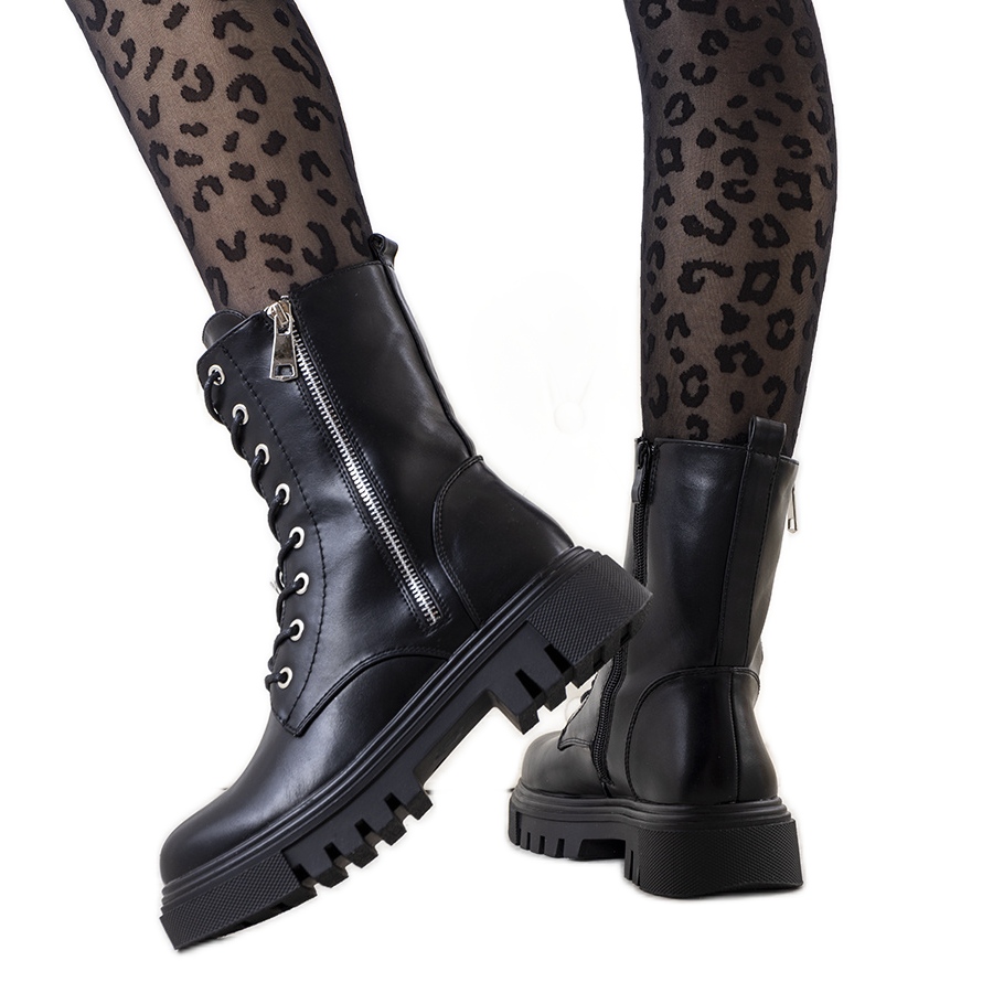 Este modelo tiene un tacón plano con una altura de 4,5 cm, lo que garantiza comodidad de uso durante mucho tiempo. La cremallera y los cordones permiten un ajuste perfecto al pie, y la puntera redonda hace que el calzado no sólo sea estético, sino también práctico.