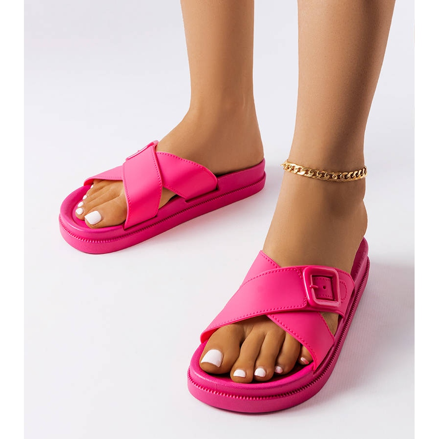 El modelo Pauline está equipado con una atractiva hebilla, que no sólo es un elemento práctico, sino también un acento estético. En un tono fucsia, estas chanclas son llamativas y lo suficientemente universales como para combinar con una amplia gama de estilos de verano, desde vestidos de playa hasta pantalones cortos urbanos.