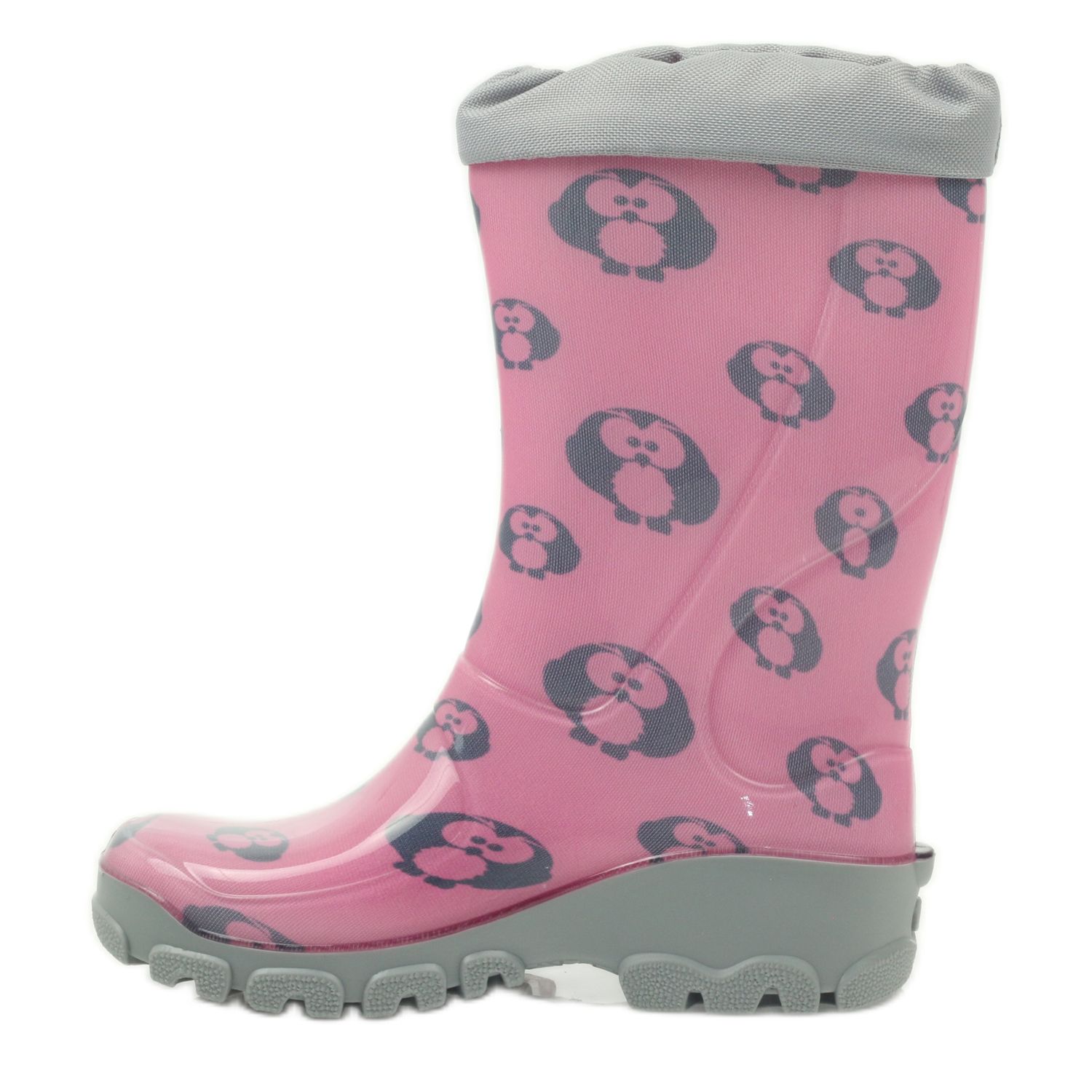 Las botas Owl Wellington con iones de plata Ren But en gris y rosa ¡son un calzado perfecto para las más jóvenes! Hechos de material de caucho de alta calidad, brindan una excelente protección contra la humedad y la suciedad, lo que le permite saltar felizmente en los charcos incluso en días lluviosos.