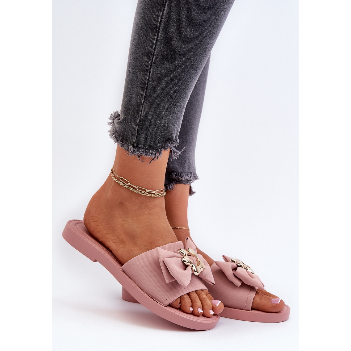 - Modelo: Chanclas planas de mujer con lazo.