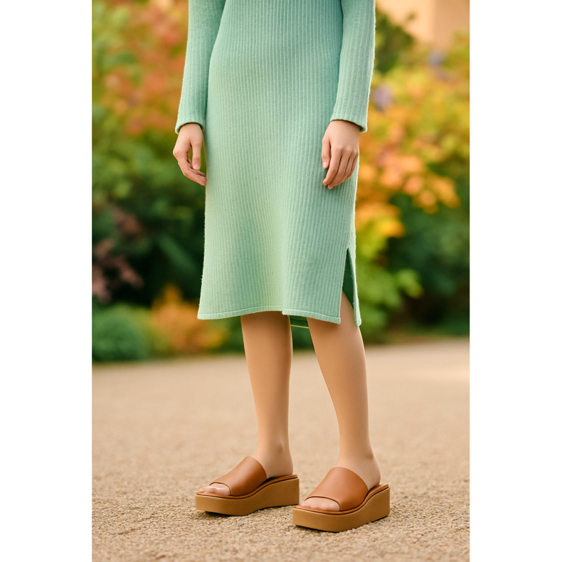 A principios de otoño, durante el llamado verano indio, las chanclas con plataforma todavía pueden servir como alternativa al calzado otoñal más pesado. Combínalas con medias más gruesas y de colores más intensos, como el burdeos, el verde oscuro o el azul marino. Combínalo con vestidos de otoño de manga larga y sustituye tus botines por plataformas en tonos cálidos y terrosos. Sin embargo, recuerda no usarlos en días de lluvia, ya que la mayoría de los modelos no son impermeables.