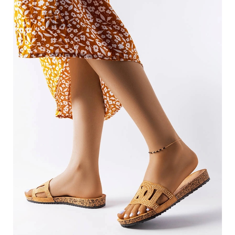 Elegantes zapatillas para mujeres caramelo de la colección de verano, decoradas con circones y diamantes de imitación. Senado, calzado informal bajo perfecto a diario: un cómodo inserto ecológico de cuero y una suela de goma duradera.
