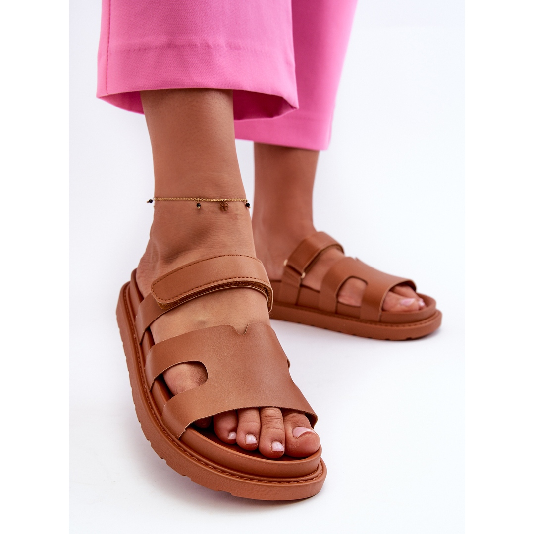 Inna marka Chanclas Mujer Piel Ecológica con Velcro Camel Silaka marrón