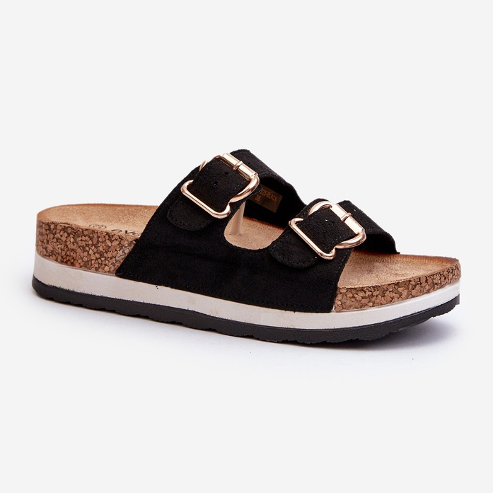 Chanclas de plataforma con hebillas para mujer, Eco Suede Black, es una opción para toda mujer que valora la elegancia y la practicidad en el calzado de todos los días. Este modelo único combina un diseño clásico con soluciones modernas, creando un calzado perfecto para diversas circunstancias.