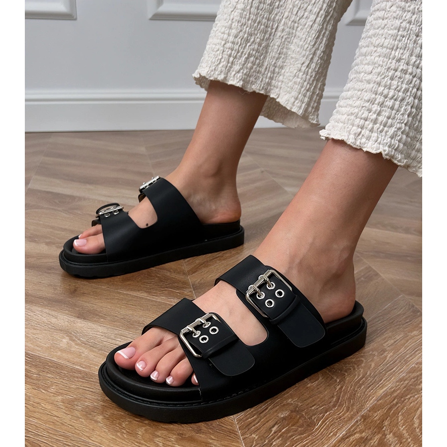 Detalles: Chanclas negras con abrazaderas en rayas negro