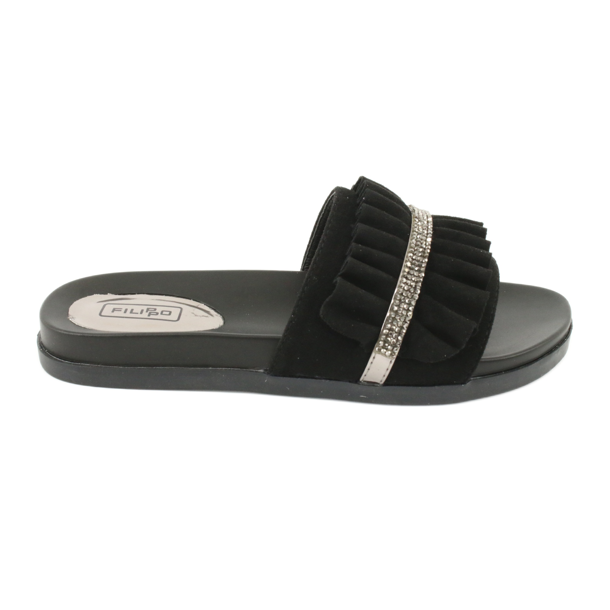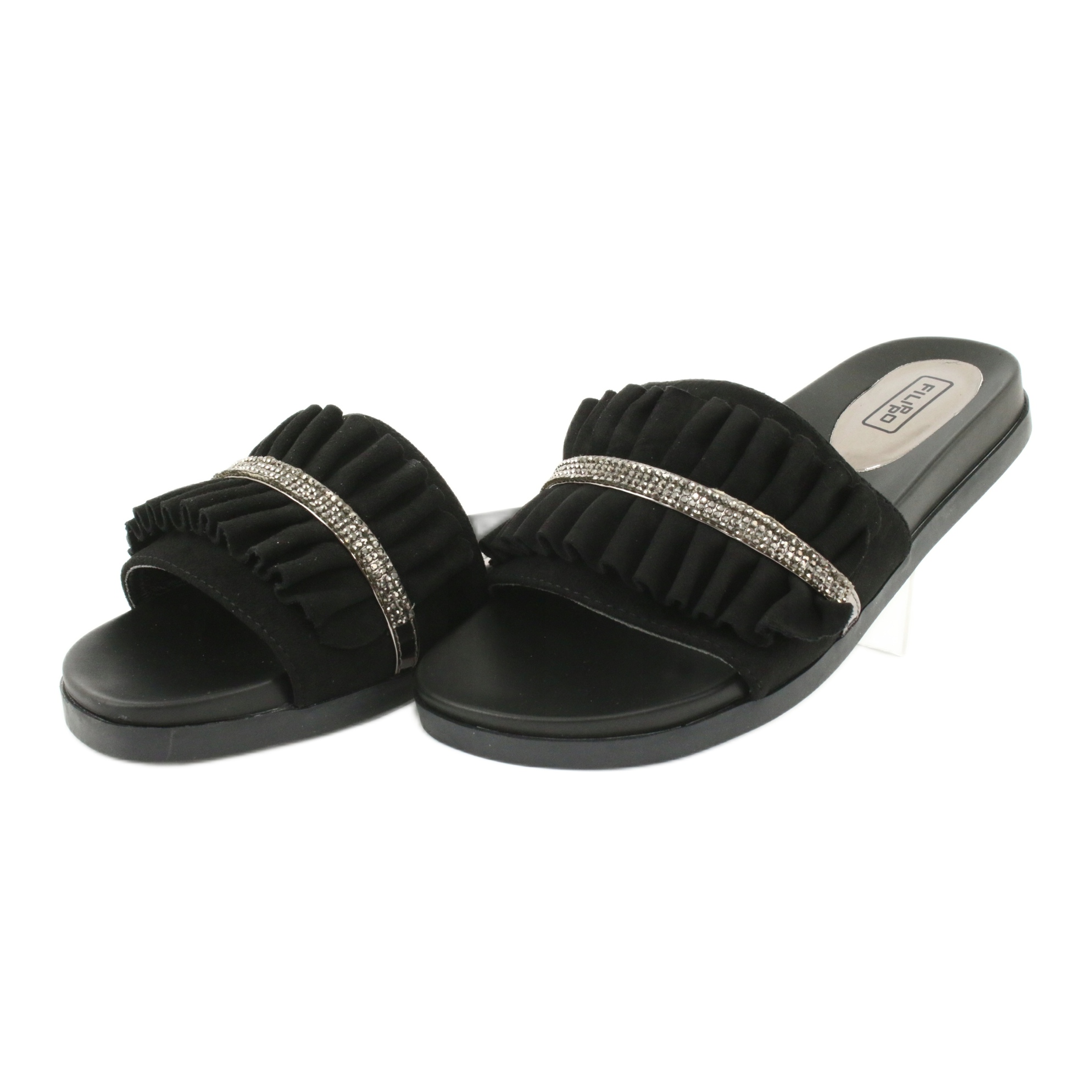 Filippo DK1241/20 BK - chanclas negras para mujeres con adornos y circones