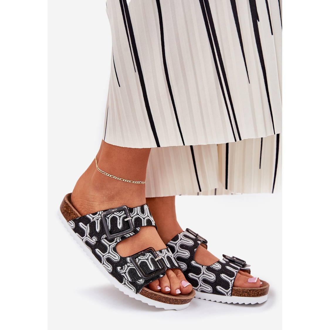 S.Barski S.Barski Chanclas para mujeres con hebillas y brillo S. Barski RB51-006 Negro