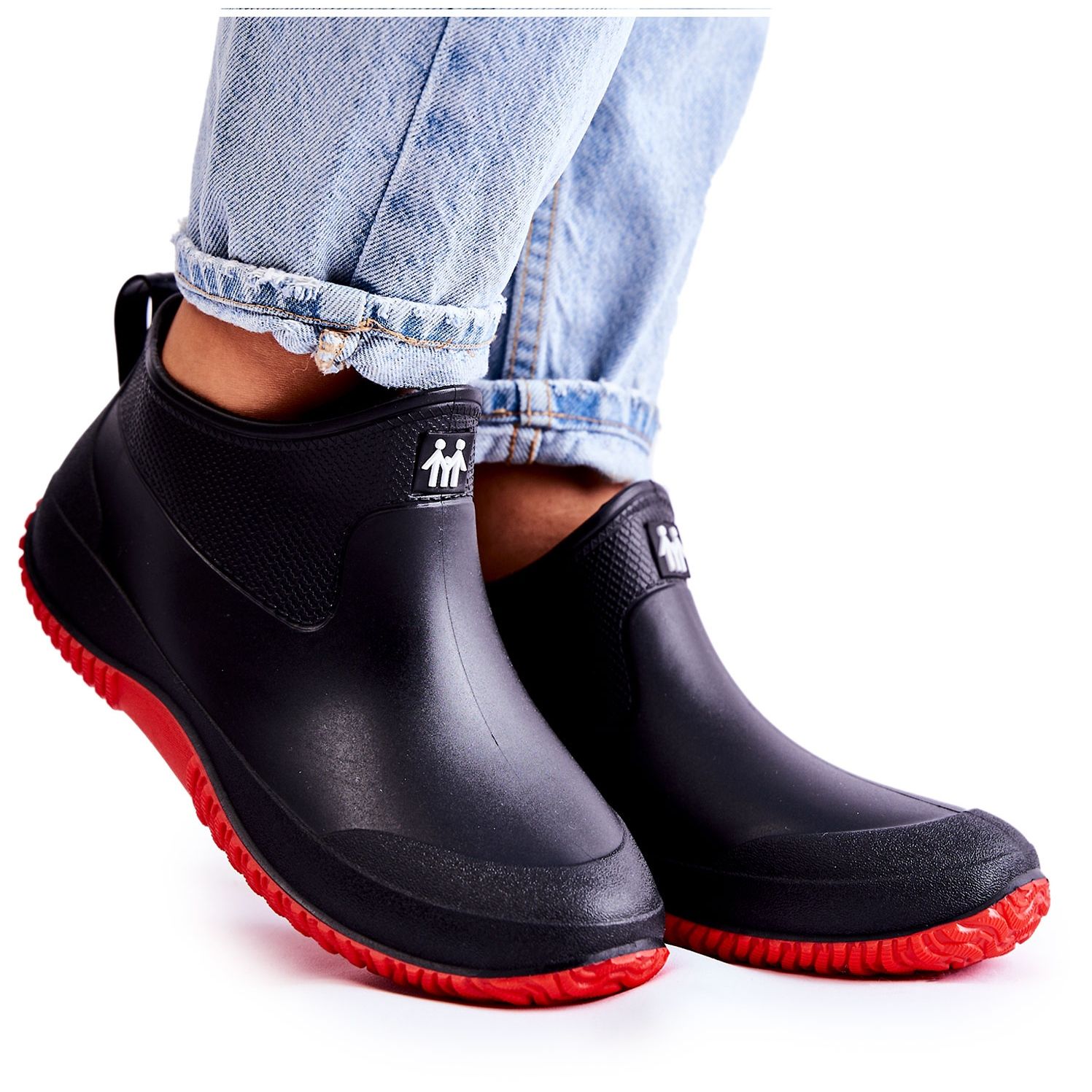 Botas de agua bajas para mujer Eldora negras y rojas: tu escudo contra la lluvia y el mal tiempo