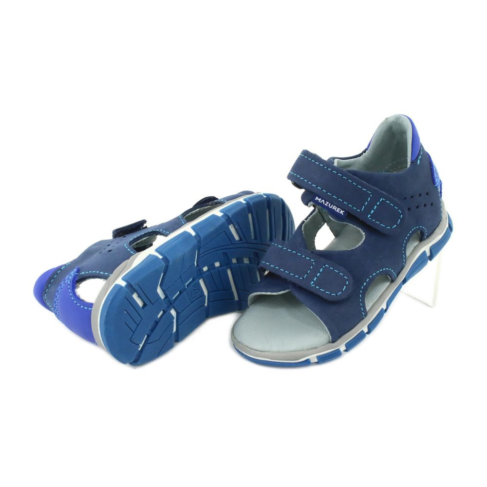 Las sandalias Mazurek 314 también tienen que ver con la estética: la moderna combinación de azul marino con inserciones azules hace que el calzado sea visualmente atractivo. La suela flexible fabricada con material duradero garantiza el máximo confort al caminar, dando al niño libertad de movimiento.
