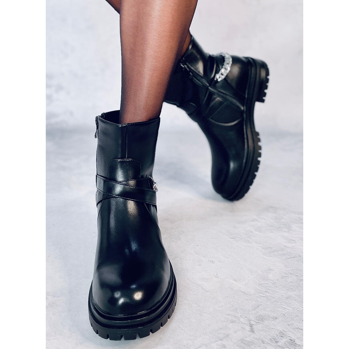 Botas para mujeres elegantes ideales para días más fríos: combinan practicidad con un acento de moda. El modelo Cindy se distingue por una cadena decorativa, plateada y una suela sólida y protectora, gracias a la cual trabajarán y en estilizaciones urbanas, y en un aspecto militar más duro. El interior acolchado con delicado pelaje proporciona comodidad y calor, y el bloqueo lateral hace que sea más fácil ponerse rápidamente.