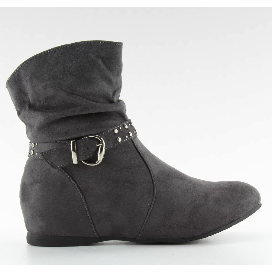 Botas de mujer cómodas: fajas sobre tacones ocultos, 5 cm de altura. Tienen una parte superior con volantes y un cinturón decorativo con tachuelas en el tobillo. En el interior, un deslizador para facilitar la colocación. Los zapatos están completamente acolchados con un delicado pelaje. Muy cómodo - perfecto para todos los días.