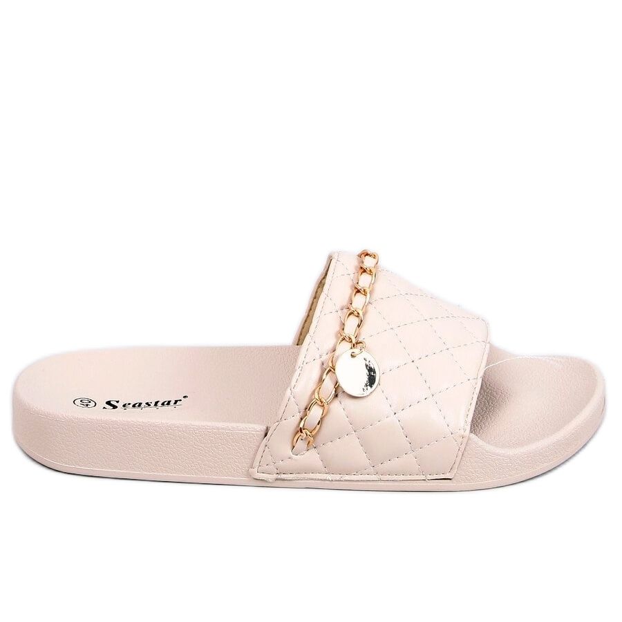 Te presentamos las chanclas beige CK189P, perfectas para toda mujer que quiera añadir elegancia a su guardarropa de verano. Este modelo único se distingue por un impresionante acolchado y una moderna cadena que llamará la atención y te hará sentir como una auténtica estrella.
