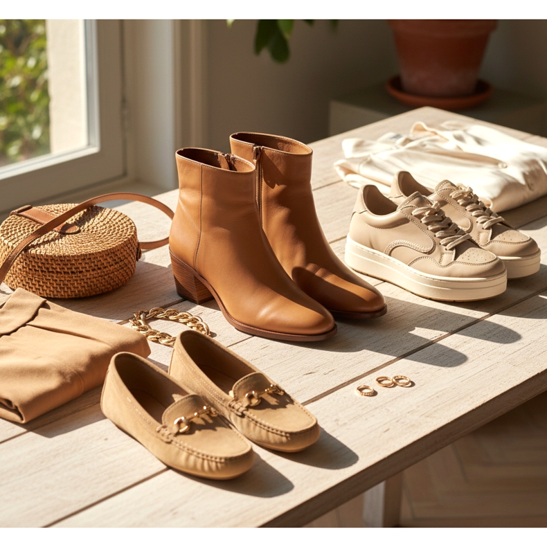Los colores naturales (camel, beige, arena) están de moda. Para la primavera de 2026, estos colores regresan en nuevas tonalidades. Esta vez, el énfasis está en los matices amarillos más cálidos que combinan a la perfección con joyas marrones y doradas. Las botas camel, las zapatillas beige o los mocasines color arena son opciones universales que funcionarán bien tanto para el trabajo como para el día a día. La combinación de zapatos neutros con pantalones neutros es una forma de lograr un estilo clásico e inmortal. El perfecto sol primaveral se refleja en las superficies color camel, agregándoles calidez y elegancia.